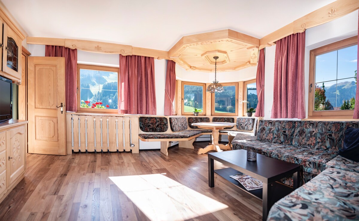 Die gemütliche Wohnung im traditionellen Tiroler Stil liegt im Erdgeschoss unseres Mehrfamilienhauses und umfasst großzügige 65 m2. In der komplett ausgestattete Wohnküche befindet sich ein großer, runder Esstisch mit Sitzecke, die besonders an langen Winterabenden zum Verweilen einlädt. Die Wohnung verfügt weiters über 1 Schlafzimmer, einen großzügigen Gang (wie bei Bauernhäuser in Tirol üblich), einem Badezimmer, separates WC, einer kleinen Terrasse mit direktem Zugang zum eingezäunten Garten