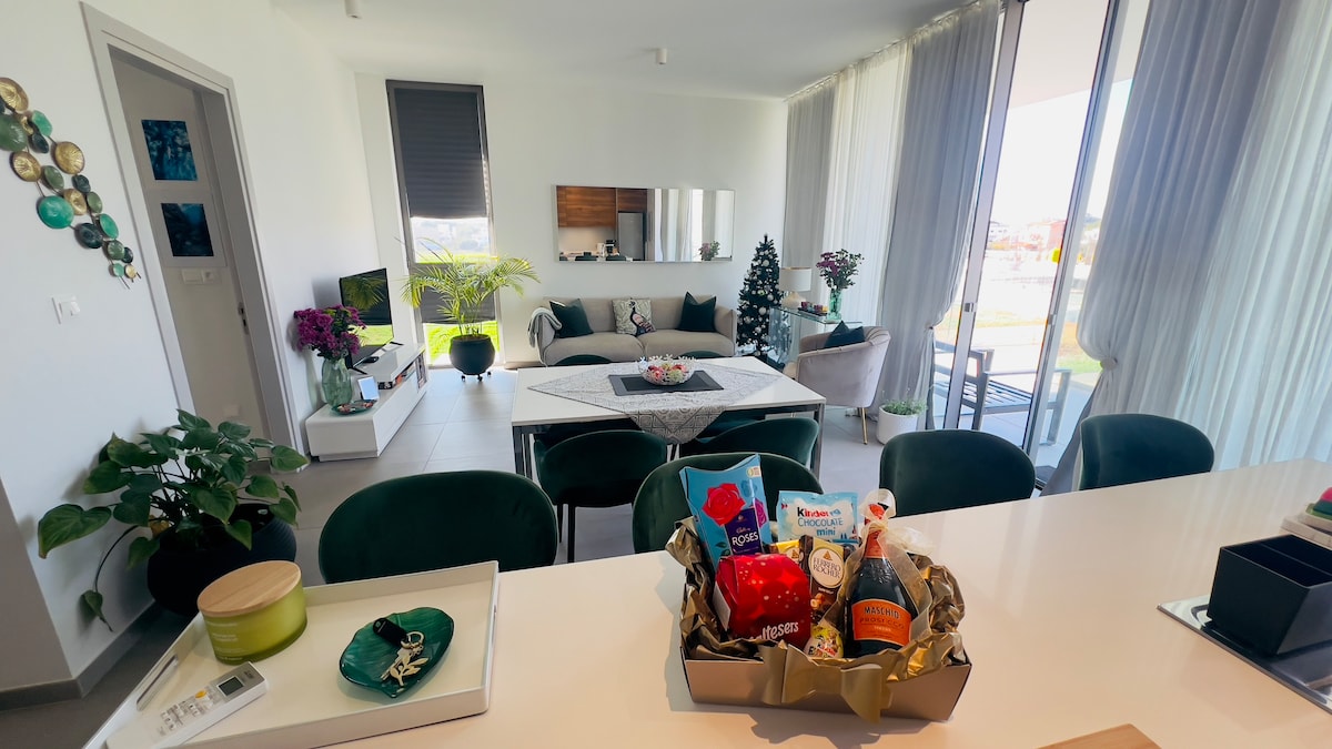 Welcome to a newly 2 bedroom lavish apartment with modern finishings. Located in prime area, minutes from My Mall, Park Gauguin ,Lady's Mile Beach, Waterpark & City of Dreams Resort Casino Hotel, Tennis Academy,& limassol Port & near AlphaMega football stadium 108 sqm of total space Master bedroom with en-suite shower 2 single beds in 2nd bedroom 2 Bathroom's in total. *Water-softener system in entire apartment Floor to ceiling windows. Open living space 55 inch Smart TV Very Large Balcony.