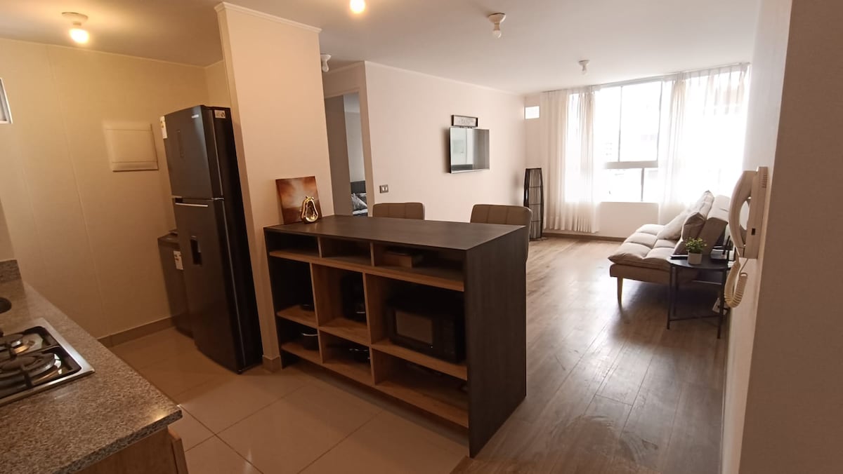 Ifulethi lesimanje nelithokomele linefenisha ephelele enkabeni ye-Miraflores (Av. U-José Pardo), izitebhisi ezisuka e-Kennedy Park, e-esplanade nase-Larcomar. Ilungele ezokuvakasha noma umsebenzi. Inamakamelo okulala angu-2: eyinhloko enombhede omkhulu nenye yesibili enombhede kasofa onezihlalo ezingu-2 kanye nesinye isihlalo esingu-1.5. Igumbi lokuphumula elinombhede kasofa osayizi wendlovukazi kanye novulande onendawo engaphandle. I-WiFi enejubane eliphezulu, ikhishi elinakho konke, i-Smart TV, i-pool, ijimu nokuqapha okungu-24/7.