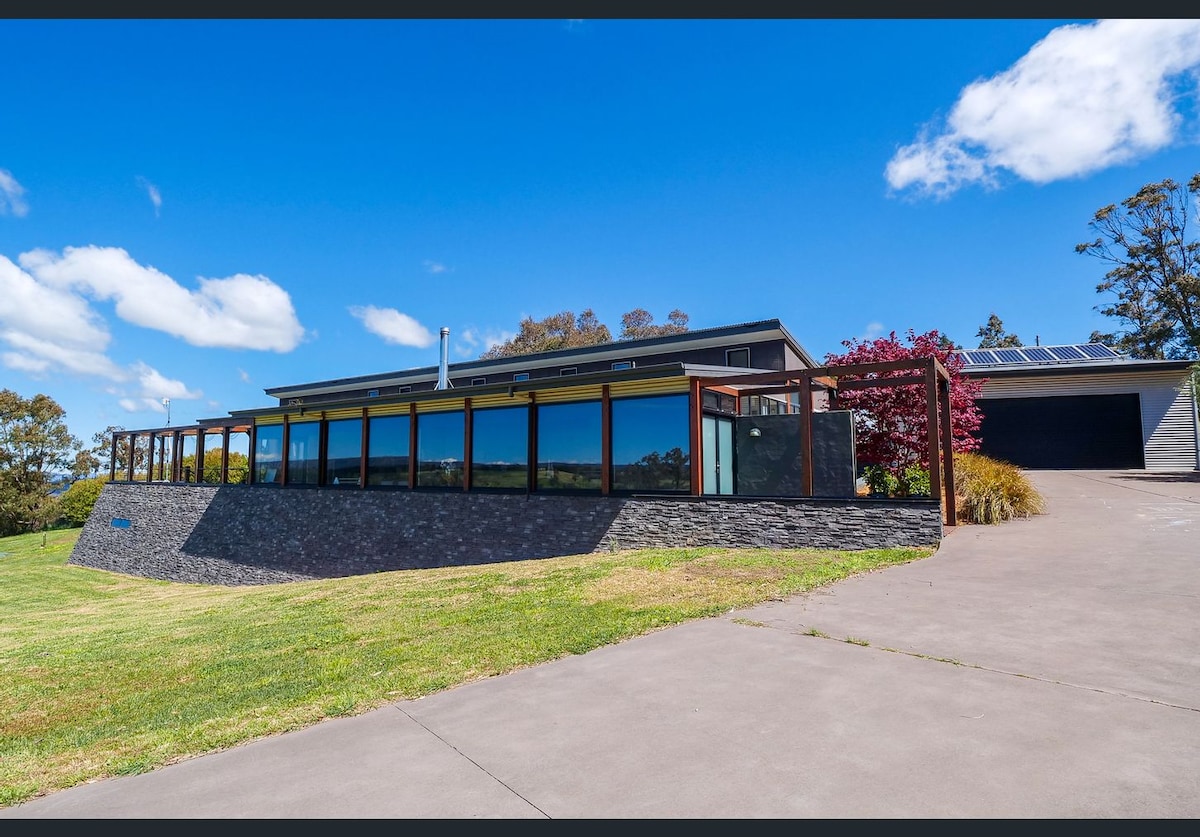Stunning view of the Blue Mountains from this unique property built by its owners over 8 years. Historic looking home with modern comforts Great walks on 200 acre property , surrounding countryside , cow and mini horse meet feed and photo exprience available on request $50 Fantastic open log fireplace sits at the heart of the home and an outdoor firepit overlooking the Blue Mountains both making for a special experience. Ideal romantic getaway or great for a group of 4 adults