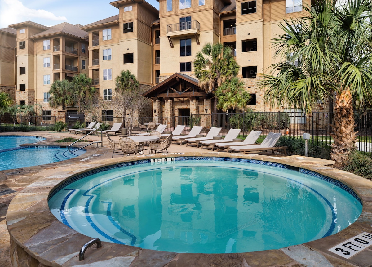 Stay in this luxury 2 bedroom, 2 bathroom condo at The Waters in Horseshoe Bay, just steps from the Yacht Club. This spacious retreat features two beautiful bedrooms, a fully equipped kitchen, designer finishes, washer/dryer, and a private balcony. Enjoy resort-style amenities including the pool and hot tub just outside. Perfect for couples, families, or small groups seeking a relaxing and upscale Hill Country getaway near the lake.