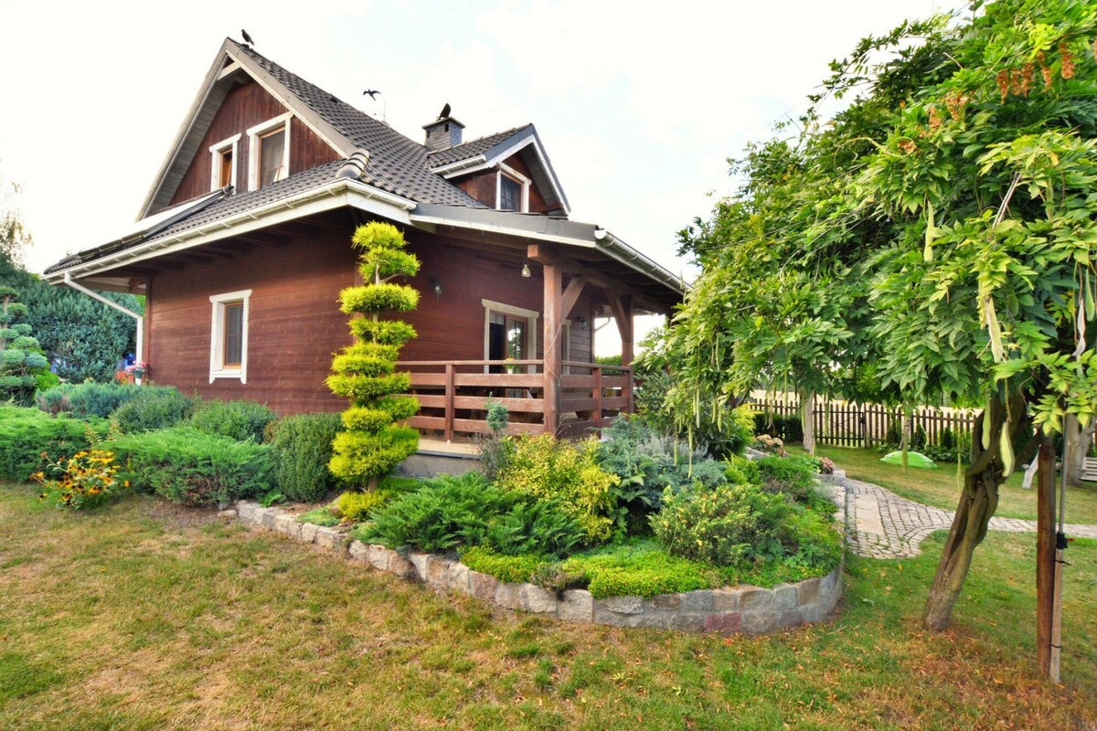 Siqasha indlu yonyaka wonke yase-Scandinavia enendawo engu-96 m2 etholakala emzaneni wase-Ośś endaweni ebiyelwe (1200 m2 ). Indlela ehlelwe ngayo indlu iboniswe ekuhlolweni phakathi kwezithombe. Endlini kukhona: - i-BBQ grill - umgodi womlilo - Izindawo ezikhangayo zezingane - ukujinga, i-trampoline, umgomo webhola. Idolobhana eliseLake Woświn. Ugu olumnene lwenza ichibi lilungele ukugeza nokuzijabulisa kwamanzi. Ukufinyelela echibini ngebhishi lomphakathi - cishe amamitha angu-200 ukusuka endlini.