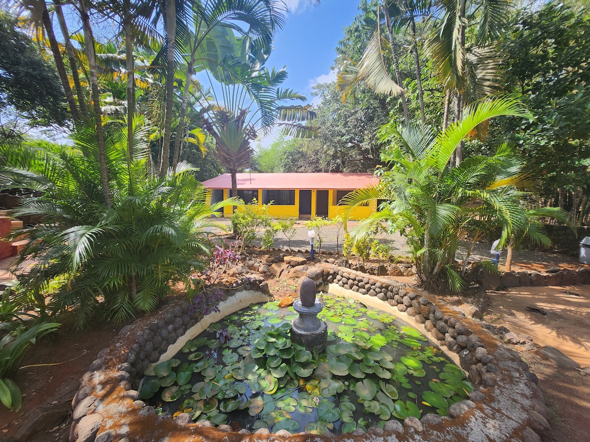 Siyakwamukela e-Sharanya.sanctuary - ama-acre amabili ezitshalo ezindaweni ezingaphansi kwezintaba zase-Lonavala ezinokubukwa okuhle kwama-degree angu-360 kwama-Sahyadri. Indawo engcwele yesitokwe sedolobha! Nqamula ukuxhumana nomhlaba. Phuma ezixukwini! Phupha, phumula, uqaphele noma ucabange. Xhumana nemvelo! Ngemizila yokuqwala izintaba engaphezu kwamashumi amahlanu ukuya emagqumeni! Kuhle kakhulu ngohambo lwangempelasonto lwabangane, imindeni namaqembu ezinkampani! Uhlala amaminithi angu-40 ukusuka e-Imagica, amaminithi angu-45 ukusuka e-Khalapur toll-naka ku-Mumbai Pune Expressway!