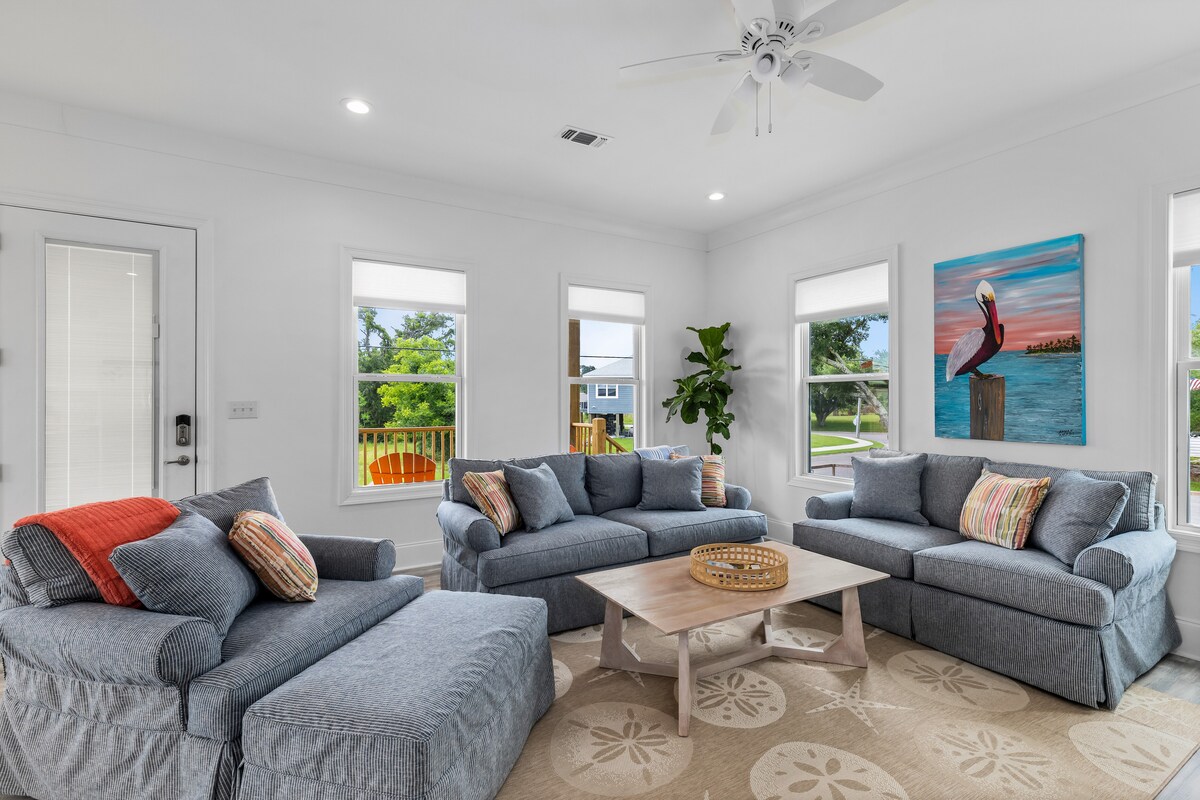 Izinyathelo ezivela emanzini, e-New Build e-Gulfport! Balekela futhi ujabulele ukuphuma kwelanga ebhishi elimangalisa/ukushona kwelanga kusuka kwelinye lama-deck amabili abheke i-Gulf noma umane unqamule i-Beach Blvd bese ubeka izinzwane zakho ebhishi lesihlabathi elimhlophe. Iqokwe kahle, indaba engu-2, ikhaya lamakamelo angu-2 elise-Beach Blvd elibheke ulwandle namabhishi anesihlabathi esimhlophe. Ngaphansi kwamakhilomitha angu-2 ukusuka edolobheni lase-Gulfport, eJones Park, naseSiqhingini sokubuka i-Casino noma ukuhamba ngezinyawo kwemizuzu engu-25. Itholakala phakathi kwe-Biloxi ne-Bay St. Louis futhi < 1.5 hr ukuya ENOLA