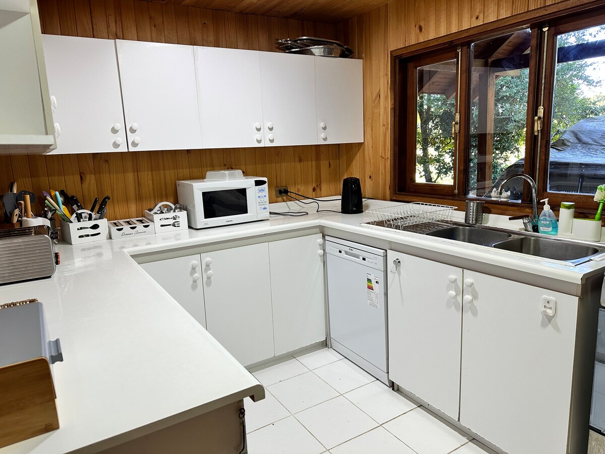 Bienvenidos a nuestra acogedora casa en un barrio residencial y tranquilo de Valdivia. Ubicada en un barrio seguro y arbolado a pocos minutos caminando del hospital regional y supermercados. La casa cuenta con 4 dormitorios luminosos, espacioso living comedor, cocina equipada para cocinar perfecta para una estancia prolongada. El dormitorio principal cuenta con cama de dos plazas con ropa de cama, dos dormitorios con cama de plaza y media con ropa de cama y un dormitorio abajo de 1 plaza.