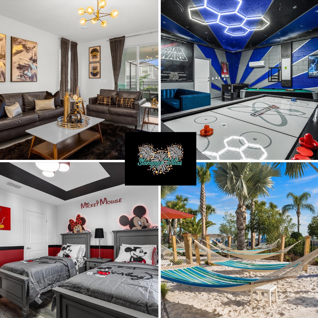Ibhalansi ephelele YOMKLAMO OSESITAYELENI, UKUNETHEZEKA KANOKUSHO, NOKUZIJABULISA OKUNGAPHELI, okukuhle nokubukwa okumangalisayo endaweni ephithizelayo engamakhilomitha angu-3.5 square mile Reunion Resort. Uzoba nendawo yakho yokubhukuda ephrayivethi, i-spillover spa, I-STAR wars cinema-game room ene-pinball, imidlalo ye-arcade yakudala, ne-karaoke, igumbi lezingane le-Marvel eline-slide yamashubhu nama-bunk amabili, i-Xbox Series S yakamuva, i-2000 ft2 pool deck, umgodi womlilo, ngisho nekhabethe le-Harry POTTER elifihlwe ngaphansi kwezitebhisi, imizuzu eya e-Disney.