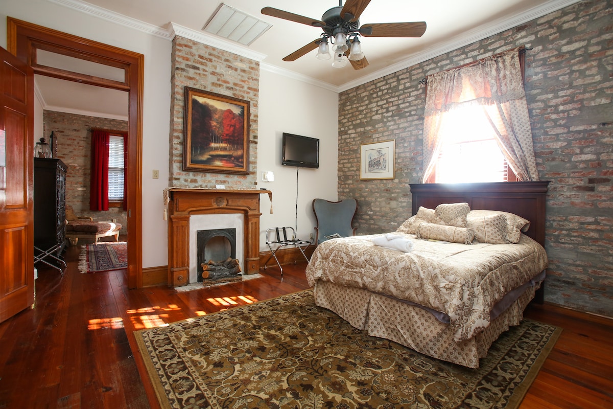 Isakhiwo sezitini se-Circa 1840, i-Balcony Suite enegumbi lokugezela yangasese isanda Kubuyiswa/Ilungiswe ngefenisha entsha kanye nezinto zokulungisa.. NgoMsombuluko-NgoLwesihlanu 8-5 asiyona indawo ethulile kodwa kunoma yiluphi ubusuku kuyaphumula, ukuhlinzeka ngobusuku obuphumuzayo. Umakhelwane wethu, Umjaho Nezenkolo, ubungaza imishado ngomculo obukhoma kodwa akakaze adlule NGO-11PM. Uma udinga ukulala kusenesikhathi, ngeke sikulungele. Itholakala ngokuyingqayizivele, eduze ne-Garden District, i-Art/Museum District, i-French 1/4 kanye ne-Conventional Center