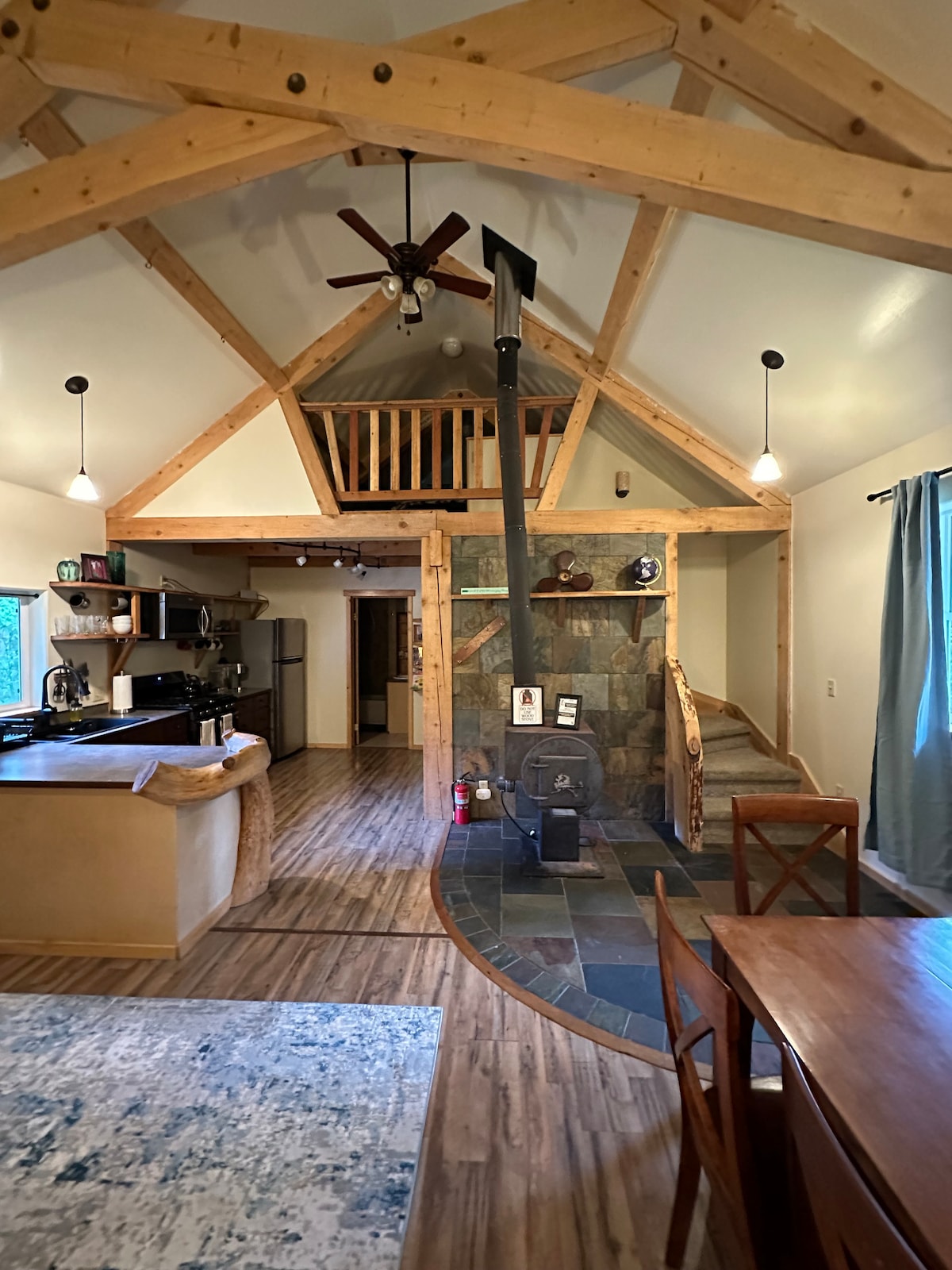 Indlu eyakhiwe ngamapulangwe encane eyakhiwe ngamapulangwe ephakeme ngokwanele entabeni ukuze ibuke i-Mt Alice isuka emphemeni ongaphambili futhi iseduze ngokwanele nedolobha lase-Seward. Kunombhede omkhulu ne-futon. Isihlalo sothando siphinde sivuselele. Kunomgodi womlilo okhululekile ukuwusebenzisa futhi amanye amabhayisikili alenga emphemeni wendlu enkulu zizwe ukhululekile ukuwasebenzisa. Indlu isentabeni kodwa umgwaqo uzwakala endlini eyakhiwe ngamapulangwe. Umbhede omkhulu ne-twin futon zitholakala egumbini elifanayo. Esinye isivakashi sakhala ngokuthi indawo yayincane.