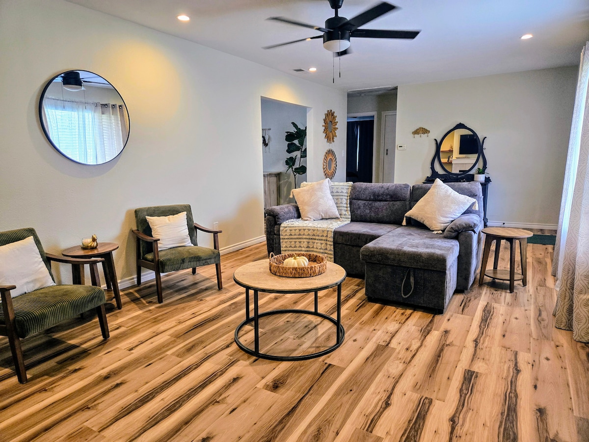 Kuhlanzekile futhi KUHLANZEKILE kakhulu! Lokhu kubuyekeziwe kombhede ongu-2 2 wokugeza imoto, igalaji eliphindwe kabili ngeke lidumaze noma yimaphi amaphupho akho e-Airbnb. Ilungele noma yibuphi ubude bokuhlala, le ndlu inakho konke wena nabangane bakho abanoboya ongakudinga. Itholakala kalula eduze ne-Texas Tech, i-LCU, i-United ne-Starbucks! Yini enye ongayidinga lapha e-Lubbock? Sisebheni Elithokomele singxamele ukukubungaza!