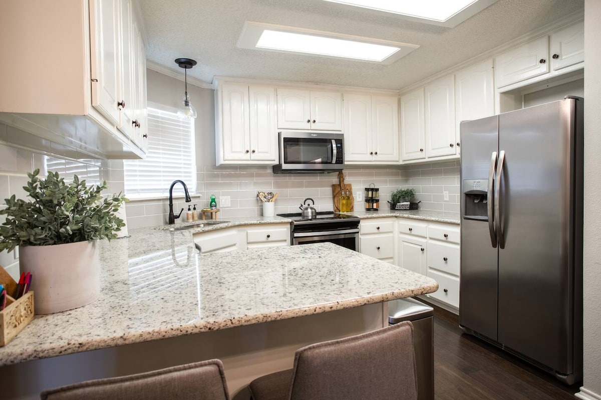 PHUMULA NGOKUNETHEZEKA KWESIMANJE KU-DUPLEX YETHU ENESILINGANISO ESIPHEZULU Uyemukelwa kwenye yezindawo eziqashisayo zeholide ezinesilinganiso esiphezulu e-Lubbock! Le duplex esanda kulungiswa inikeza inhlanganisela ekahle kakhulu yesitayela, ukunethezeka, nokunethezeka, okwenza kube yindawo ekahle yokuvakasha kunoma yibuphi ubude bokuhlala. Ukuhlobisa okucwebezelayo, kwesimanje nendawo yokuhlala evulekile kunikeza isimo esithokomele kodwa sesimanje lapho ungakhululeka khona futhi uphumule.