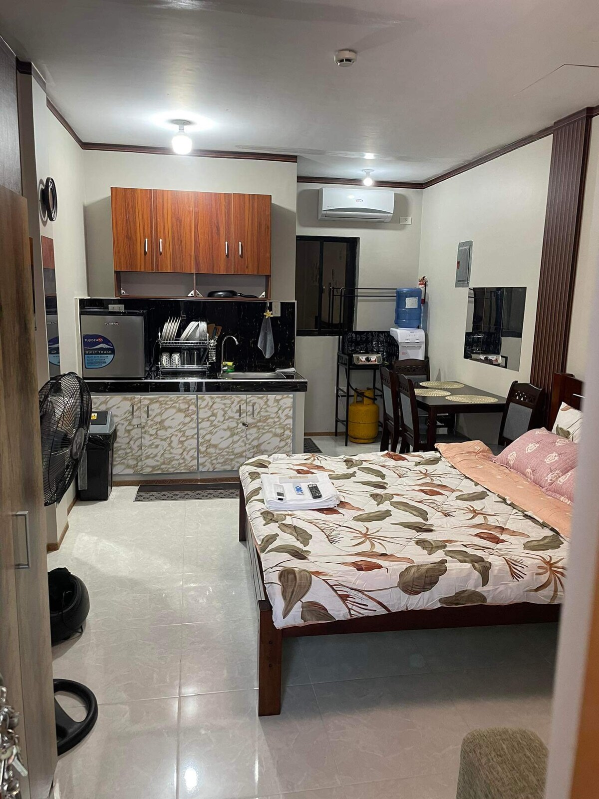 4J Transient House available for rent.🏠 Best for couples or family studio type Maximum of 2 pax Additional 250/pax ✳FREE cleaning, once a week / Change bedsheets/ blankets/ towels ✅Split type aircon ✅Wifi/netflix ✅Electric fan ✅TV/soundbar ✅Mini ref ✅Clean Comfort room ✅Clean kitchen sink ✅Cabinet ✅Dining Set ✅food utensil ✳Allowed cooking ✅ Purified Water jag ✅Rice cooker ✅water dispenser ✅Stove ✅Frying Fan, Cooking pot ✅Exercise equipment ✅Electric foot massage ✅cctv in premises