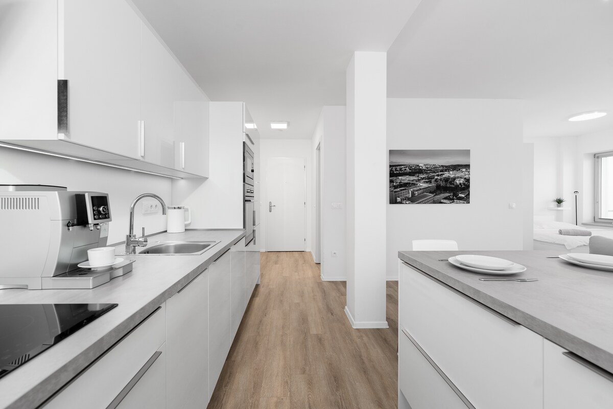 Jabulela okokuzithokozisa okusesitayeleni kokuhlala enkabeni yesenzo. Indawo yokuhlala yesimanje nethokomele endaweni ethulile imizuzu engu-10 uhamba ngezinyawo usuka maphakathi ne-Uherské Hradiště . Budebuduze nendawo yokuhlala kukhona ipaki, umzila webhayisikili, isuphamakethe, i-aquaparkenenhlalakahle, i-cinema, inkundla yebhola lezinyawo nenkundla yeqhwa. Ifulethi lisezitezi ezingu-3 futhi linekhishi lesimanje elinezinto ezidingekayo, igumbi lokugezela eline-shower, umbhede, usofa,i-TV. Indawo yokupaka yangasese iyatholakala phambi kwendlu.