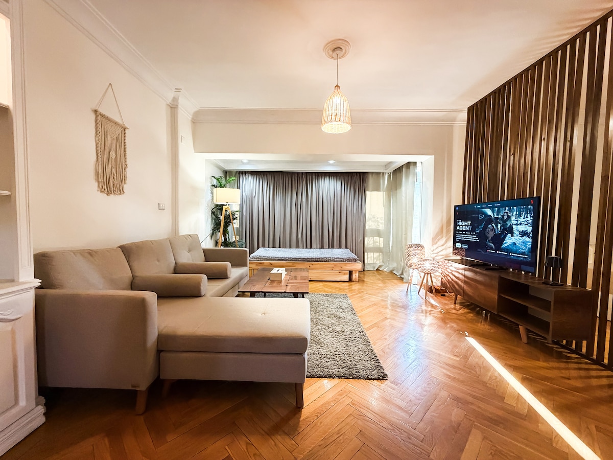 Welcome to this exceptional 110 m² flat, ideal for four travellers seeking elegance, comfort and peace! The natural light and generous space offer a soothing setting, ideal for a getaway in Maadi. Located in the heart of the city, this flat allows you to easily discover the treasures of Maadi while enjoying a luxurious and comfortable space. Think of checking out my profile, for more apartments in the same building! Book now for an unforgettable experience ✨