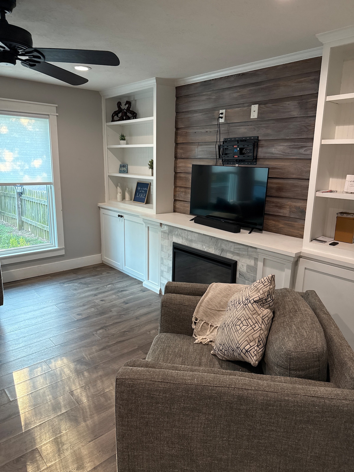 Phindela emuva, phumula, futhi ujabulele izindawo ezingasechibini! Izindlu zethu ezakhiwe ngamapulangwe ezithokomele ngayinye ziza nombono omangalisayo wamanzi futhi zilungele kangcono ukuhamba ngesikebhe nokuzijabulisa ngokudoba. Futhi yebo- yonke indlu eyakhiwe ngamapulangwe ine-jacuzzi yayo yangaphandle ephrayivethi, ekulungele unyaka wonke. Lounge in a hammock, roast marshmallows by the fire pit, or take in the wide-open green space and beautiful lake view. Uhlela uhambo lweqembu? Sizokusiza ngezindlu ezakhiwe ngamapulangwe ezingu-4 namakamelo angu-7 e-motel-ilungele ukuhlangana kabusha nemikhosi yanoma yiluphi uhlobo.