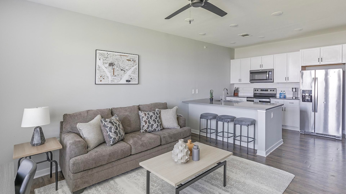 Jabulela okokuzithokozisa okuyisitayela kule ndawo ephakathi nendawo. Phumula, uvuseleleke, futhi ujabulele izindawo zokuhlala ze-premium e-Outfield Oasis, ifulethi lesimanje elinekamelo elilodwa elise-Ballpark Apartments e-Town Madison — indawo ekahle kakhulu yabahlengikazi abahambayo, onjiniyela, noma izivakashi eziya e-Huntsville. Izitebhisi ezisuka e-Toyota Field, le yunithi yokugcina esendaweni ephakathi nendawo, evumela i-Airbnb inikeza ukunethezeka okuyisitayela esinamasevisi esitayela se-resort, ukungena kukheshi, nokusondelana nokudlela, ukuzijabulisa, nemvelo.
