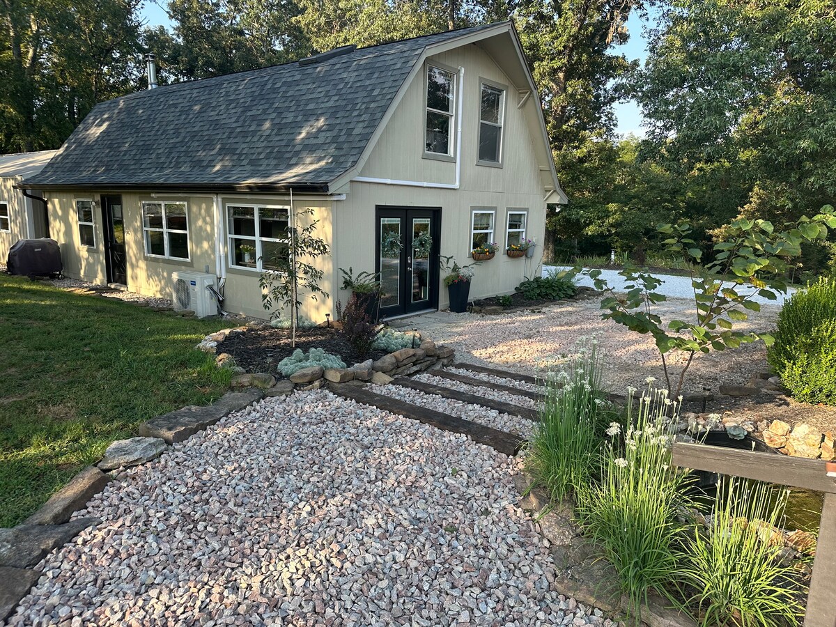Khululeka kule ndawo yokuvakasha eyingqayizivele nenokuthula. Indlu eyakhiwe ngamapulangwe yase-Lil ' River iyikamelo elilodwa, indlu eyakhiwe ngamapulangwe eyodwa eqhele ngamamitha ambalwa ukusuka e-White River. Itholakala e-Serenity Campground Riverside kanye nezinye izindlu ezakhiwe ngamapulangwe ezingu-2 kumahektare angu-3 ayimfihlo. Isistimu yomzila we-Mill Creek UTV iphansi nje komgwaqo futhi ifinyeleleka kusuka ku-Campground. Alikho ikhishi kodwa kukhona indawo ehlanganisiwe yepikiniki ne-grill yamalahle. I-Wi-Fi nayo iyatholakala. Woza ujabulele ukuthula kwama-Ozarks!