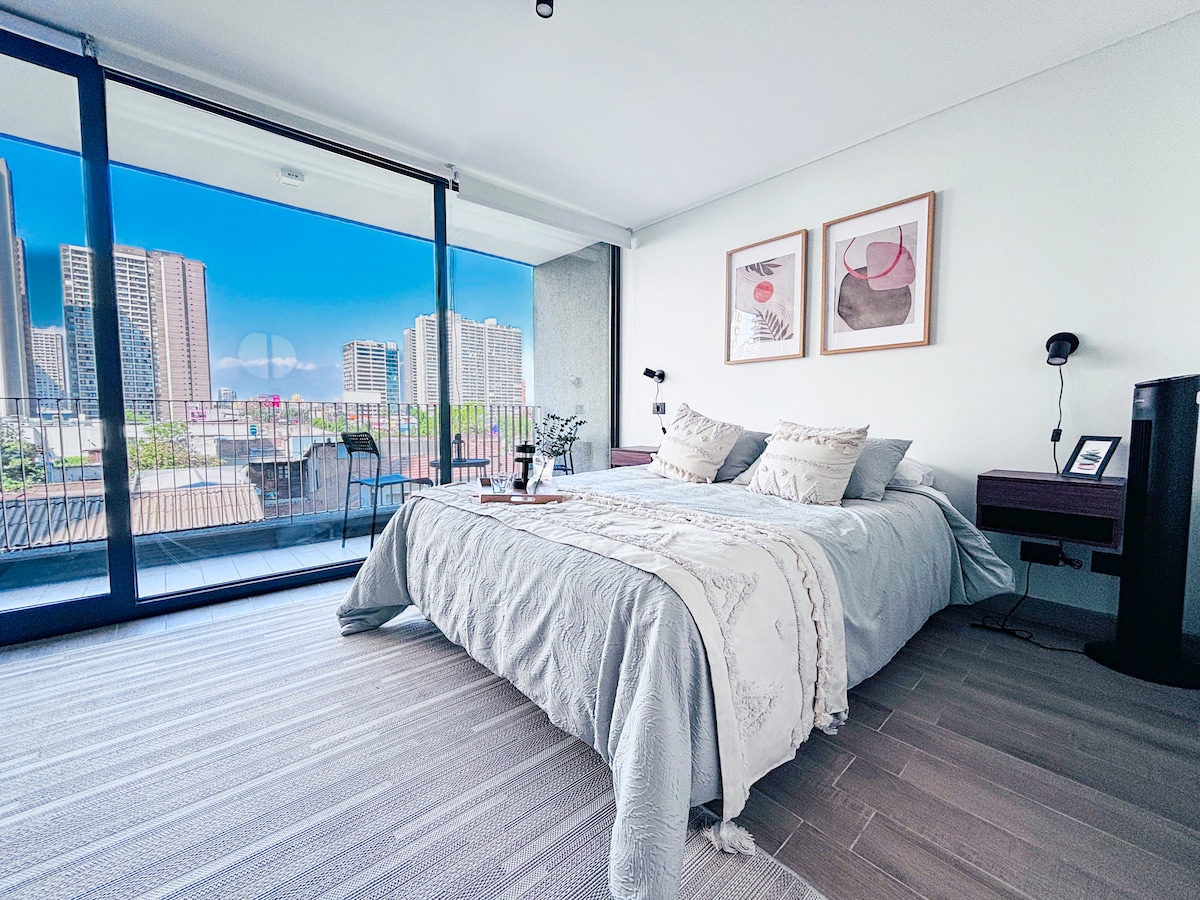 Disfruta, relájate y conoce Santiago. Departamento nuevo, full equipado ubicado en sector residencial a 7 min del Metro y a 1 cuadra del Estadio Nacional. Cuenta con 1 dormitorios y 1 baño, aire acondicionado, zona recreativa para niños, estacionamiento privado y seguridad 24/7; ideal para familia, matrimonios, parejas, amigos y aventureros. Alejado del ruido y a metros del Estadio Nacional.
