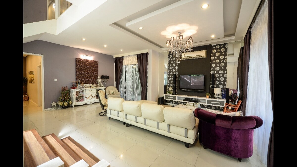 I-Dan Garden -็ญ่ I-bungalow esanda kufakwa ifenisha engu-6000+ sq. bungalow maphakathi ne-Malacca. 15-20min ukusuka lapha kuya ku-Jonker Gallery . Endaweni yethu,isivakashi ngeke sithole imisindo engcolile ifomu lemoto ne-traffic jam phakathi nenkathi ephakeme. Indlu yangasese ye-Premium ne-smart tv kuwo wonke amagumbi,Izivakashi zingaphumula engadini yethu nasezindaweni ezijabulela umculo ovela ezikhulwini ezisegumbini lokuphumula. Siqinisekisa ukuthi uzoyithanda le ndawo ngenxa yendawo enhle, imibhede ethokomele,kanye nendawo yangaphandle. Igumbi 1 & Igumbi 4 -super umbhede olala umuntu oyedwa x 2 -queen usayizi embhedeni x 1 -igumbi lokugezela (i-shampoo & ithawula lifakiwe) -smart tv (uxhumano oluqinile) -hair dryer - indwangu hanger -2.0 hp air conditioner Igumbi 2 & Igumbi 3 -king usayizi embhedeni x 1 -igumbi lokugezela (i-shampoo & ithawula lifakiwe) -smart tv (uxhumano oluqinile) -hair dryer - indwangu hanger -1.5 hp air conditioner Igumbi le-TV -55โI-Smart Tv (uxhumano oluqinile) - izipikha zekhwalithi - imibhede ye-sofa Ikhishi -iplwana nama-cups&spoon&fork (ekusetshenzisweni kwezivakashi ezingu-12) -amathuluzi okupheka -umshini wamanzi ohambayo -Bar thenda -fridge -washi umshini Igumbilokuphumula -Itafula -2.5 & 3.0 hp cassettes air conditioner -Itafula elijong Abanye: Umpheme wemoto (wama-3cars) Igceke lokubuka ingadi x 2 imodems x 2 Ukuvinjelwa -Akukho ukubhema ngaphakathi - Azikho izilwane ezifuywayo ezivunyelwe -Akukho imisebenzi yangaphandle ngemva kuka-11pm