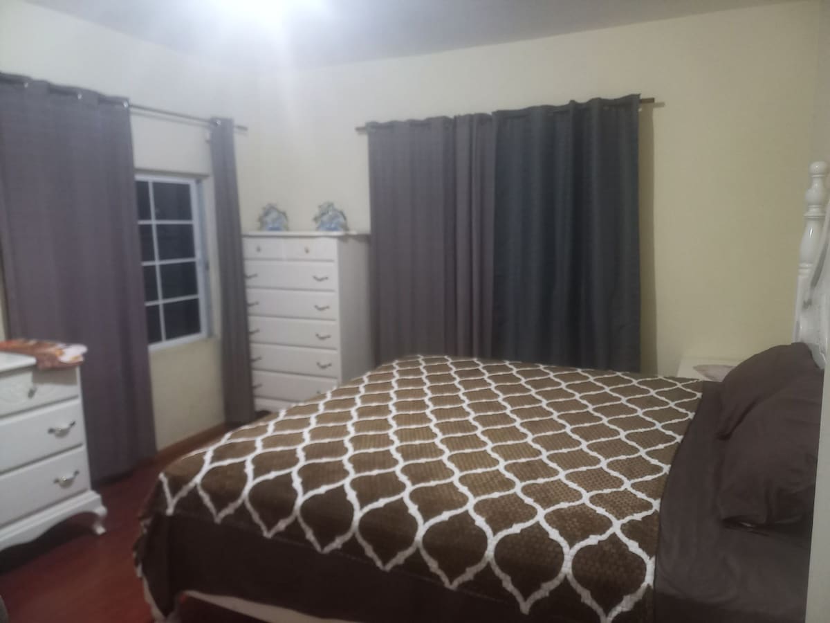 Beautiful Top Floor Apartment in the country overlooking the serene mountain view offers you 4 bed (2 with air conditioning) & 4 bath and a Large modern kitchen and living area. Enjoy the large verandah overlooking the expansive property grounds just a 10 min drive from Junction. Relax in paradise where the river & beach are a 15 min drive. Choose from multiple beaches 35 min drive (Treasure, Las Vegas, Black River beach). Transportation/private car rental is available for a surcharge