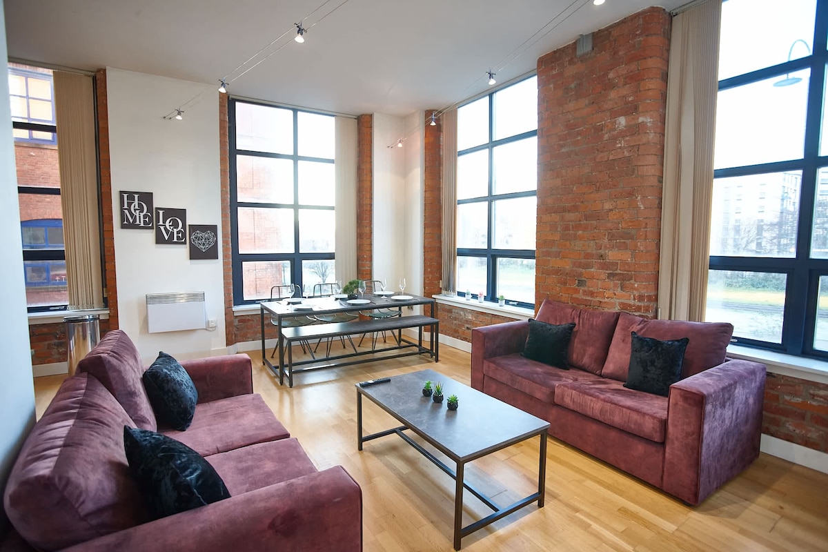 Uyemukelwa e-Manchester Industrial nge-CasaCity! Leli fulethi elikhangayo elingu-2BR/2BA lise-Castlefield, imizuzu engu-9 kuphela ukusuka e-Manchester's City Centre. Uzoba sendaweni ezungeze amadolobha amakhulu ene/imisele, imigoqo engasemanzini, izindawo eziluhlaza, nebanga lokuhamba ngezinyawo ukusuka e-Castlefield Bowl. Ifulethi linikeza i-Smart TV nekhishi elinakho konke elinomshini we-Nespresso. Womabili amakamelo okulala akhethwe kahle anombhede omkhulu nezindlu zokugezela eziseceleni. Ukuze kube lula, i-Tesco Express iseduze!
