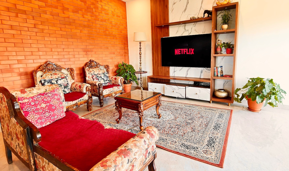 Make some memories at this unique and family-friendly place.Location: This 2 BHK flat is conveniently located on the First Floor. Capacity: It comfortably accommodates 4 members. Note: Other guests can be accommodated in different flats within the same building, subject to availability. Rooftop Terrace: The communal terrace is located on the 5th Floor.