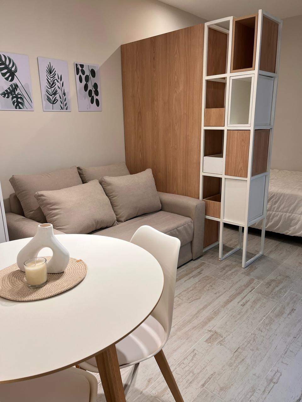 Ifulethi elikhanyayo lase-Monosambiente, esakhiweni seminyaka embalwa. Itholakala endaweni ethulile kodwa inezitolo endaweni. Amabhulokhi angu-7 kuphela ukusuka ebhishi! Ikhishi lihlanganiswe egumbini lokuphumula ngebha. Indawo yokuphumula enesihlalo sezingalo nesihlalo sokuphumula. Ikamelo lokulala elinamakamelo amabili. Igumbi lokugezela elinobhavu neshawa. Inekhebula ne-wi-fi. Ifulethi lilungiselelwe abantu ababili. Inegaraji elingaguquki elimbozwe kancane. Lesi sakhiwo sinendawo yokubhukuda.