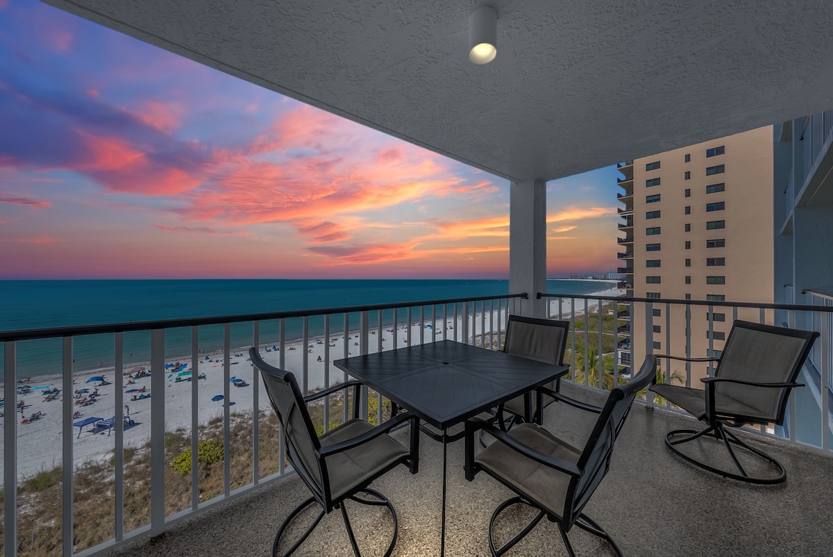 Full Remodel of Condo Completed; 2 King Ensuites 8th Floor Panoramic Ocean View | On Beach! | Luxury and Comfort | Totally Refreshed Beachfront Condo! | Walking distance to shops, golf & dining! Lux Condo totally updated w/ high end furniture, luxurious bedding, black stainless steel appliances, roller shades, LG Smart TVs in every room, & amenities to enable your rest & relaxation! 5 Star Vacation Getaway | Not the Average Rental | Sat to Sat weekly reservation | Book your SnowBird Trip!