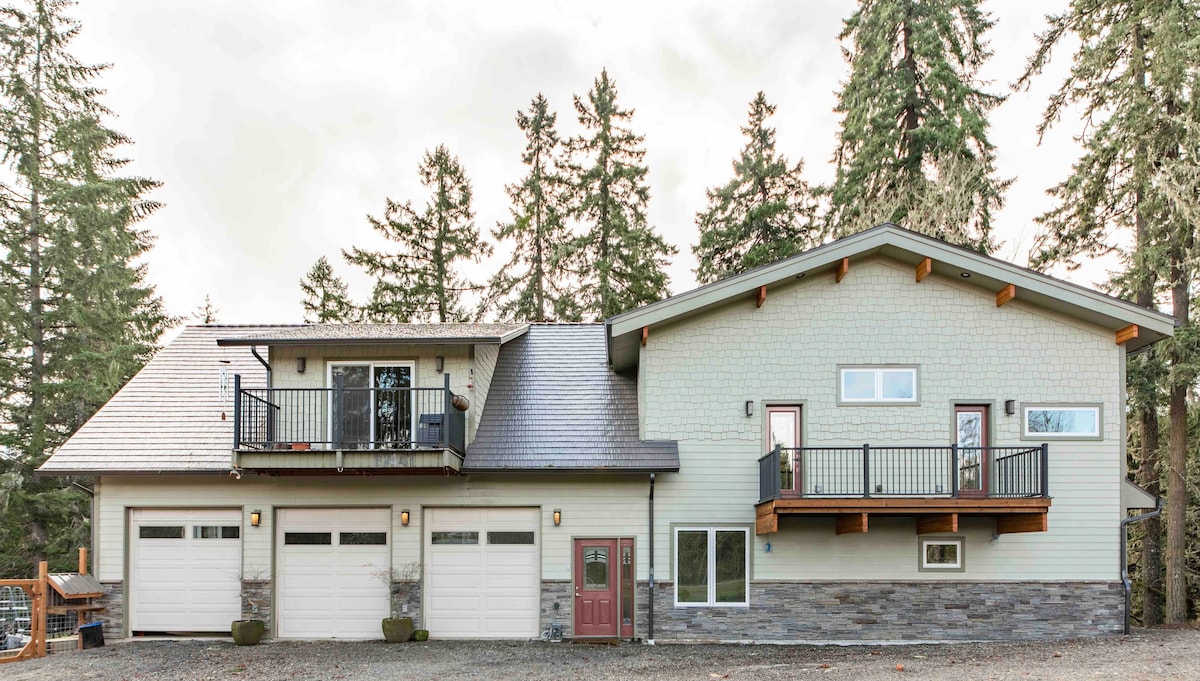 Le ndlu iyiholide elisezingeni eliphezulu ngempela elinobuciko obukhanyayo! Inikeza ingqikithi yobumfihlo, ukubukeka okumangalisayo kwesigodi kusuka emphemeni waso omkhulu, kanye nobhavu wamanzi ashisayo wokungcebeleka ekupheleni kosuku. Uzozizwa sengathi ukude nokuphithizela kwedolobha, nokho ungaphansi kwemizuzu engu-20 ukusuka eDowntown Eugene. Leli iholide elikahle kakhulu kuwe, umndeni wakho, nabangane bakho!