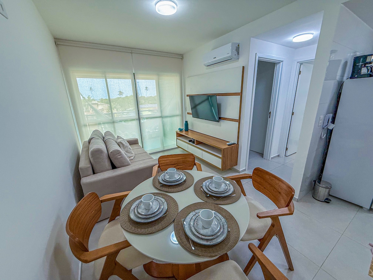 Apartamento completo com 2 quartos, sendo uma suíte, banheiro social e varanda gourmet, a poucos minutos da orla da praia do Francês. Conta com Wi-fi rápido, ar-condicionado e Netflix. Ideal para descanso, temporada ou trabalho remoto. Acomoda até 6 hóspedes. Localizado a 1,5 km da orla e da La Rue (5 min de carro), em Marechal Deodoro, a 20 min das praias de Maceió. Preço final transparente: não cobramos energia elétrica por fora nem taxas extras após a reserva.