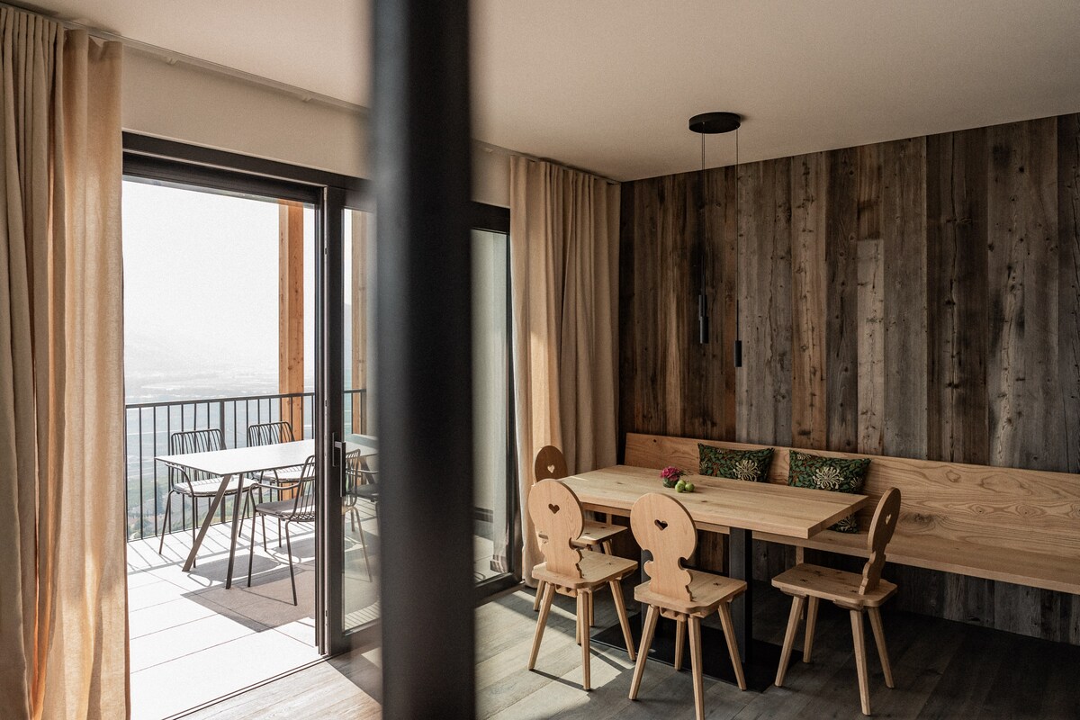 Ukubukeka okukhulu, ithala langasese namafulethi amabili amasha nasesitayeleni. Lapho lapho lapho kwakukhona i-meadow enkulu enama-ferns, "i- farnhaus" yethu, maphakathi nemvelo, ithule futhi itholakala kalula futhi kalula. Phambi kwethu, yonke i-Adige Valley inwebeka, umbukiso nganoma yisiphi isikhathi emini nasebusuku ne-Merano Castle ne-Tyrol Castle zisezinyaweni zethu. Isiqalo esikahle sokuqwala izintaba nokuhamba ngezinyawo okuhle.