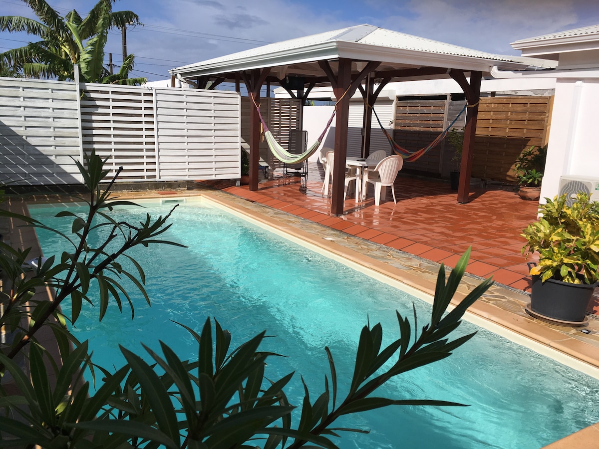 I-bungalow yabantu abangu-2, umbhede owodwa ongu-140, igumbi lokugezela, ikhishi elincane, elisendaweni ephrayivethi enengadi. Uzoyijabulela ngokugcwele indawo yokubhukuda (8mx3m), indawo yokupaka, njengoba le ndawo yokuhlala ingumuntu ngamunye ngokuphelele. I-wifi ye-inthanethi Ivikelekile isango likagesi I-Carbet BBQ enama-hammocks angu-2 Kungenzeka ube nesinkwa, amakhekhe, amakhekhe alethwa njalo ekuseni ngumbhaki wendawo, isilinganiso esikhethekile nokulethwa kwamahhala kwezivakashi.