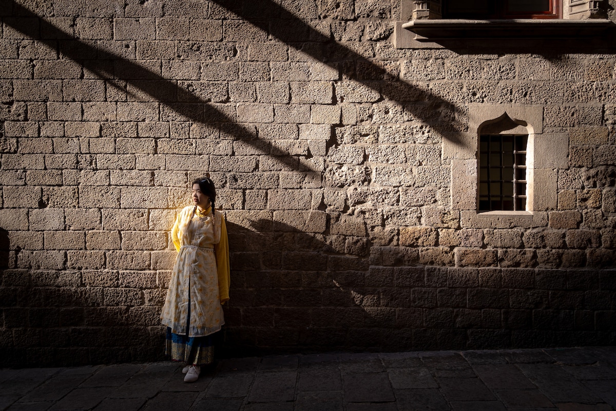 Ngenza izithombe zemfashini ngigxile esitayeleni sasezitaladini e-Barcelona.