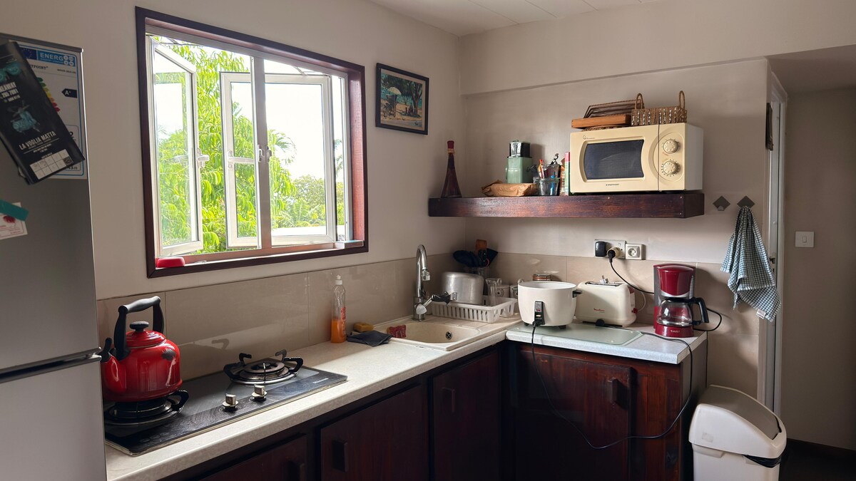 Imizuzu embalwa nje ukusuka ebhishi elihle lase-Le Morne, lokhu kukhululekile, okuhlanzekile futhi okuthokomele ekamelweni elilodwa lokuziphekela lisendaweni yokuhlala yangasese. Ama-studio angu-4 eduze komunye nomunye. Izitolo ezinkulu, izindawo zokudlela sezikuseduze. I-Le Morne beach yaziwa ngokuthi ingenye yezindawo ezinhle kakhulu zokutshuza emoyeni nekhayithi emhlabeni. Uma ungumgoli ozimisele, kunezindawo zegalofu ezimangalisayo ezingu-3 ezisondelene kakhulu! Hlola iphrofayili yami ukuze uthole enye indawo yokuhlala uma lena ingatholakali