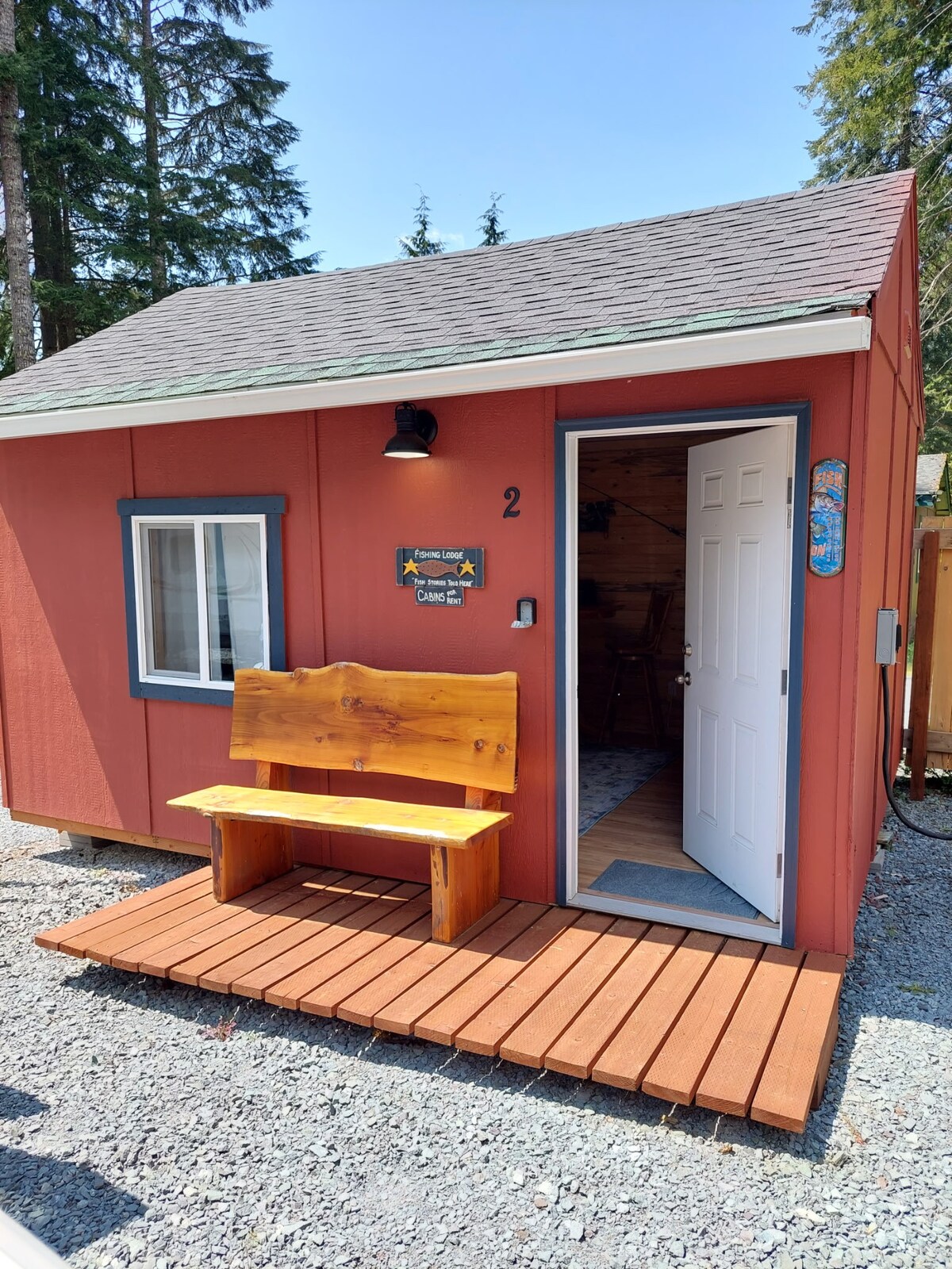 Indlu eyakhiwe ngamapulangwe yesitudiyo esisegcekeni elingu-1/3 acre w/izihlahla ezinkulu, uhambo olusheshayo oluya e-Mayfield marina! Le ndlu eyakhiwe ngamapulangwe engamamitha-skwele angu-256 inosilingi omuhle kaphayini kanye nemodeli entsha sha! I-quartz countertop ekhishini, umpompi wokukhipha, ifriji eligcwele, i-microwave, nokuningi! Ubhavu omusha uhlanganisa ishawa egcwele. Umbhede omkhulu ulala abantu abangu-2, umbhede wosofa ungadluli ezinganeni ezingu-2 ezincane. Izinkumbulo ezizungeze umgodi womlilo ngezinkuni eziningi. Ama-kayak/ama-paddleboard atholakala ngesicelo esivela ku-dock ephrayivethi. Isithasiselo sendawo ye-RV eseduze. Buza mayelana ne-dock ephrayivethi yesikebhe sakho!