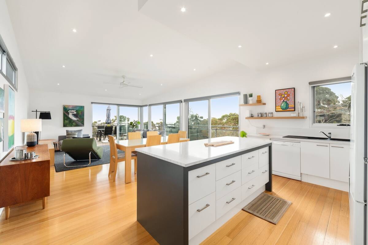 * Yonga Okukhulu: Isaphulelo esingu-20% Emaholidini Esikole Sase-Victoria * Le ndlu yasebhishi ehlotshiswe kahle, ekhethwe kahle e-Rye, i-Victoria iyindawo ekahle kakhulu yokuvakasha kulabo abafuna isitayela nokunethezeka. Jabulela indawo enhle ezungezile yezihlahla ze-Moonah kusuka emphemeni ophrayivethi ovulekile, olungele ukudla inyama noma ukuthamela ilanga. Itholakala enkabeni yeNhlonhlo yase-Mornington, le ndlu engasebhishi iyimizuzu nje ukusuka e-Peninsula Springs, izindawo zokwenza iwayini, izinkundla zegalofu, amathilomu, kanye namabhishi aseceleni kwebhishi nangemuva.