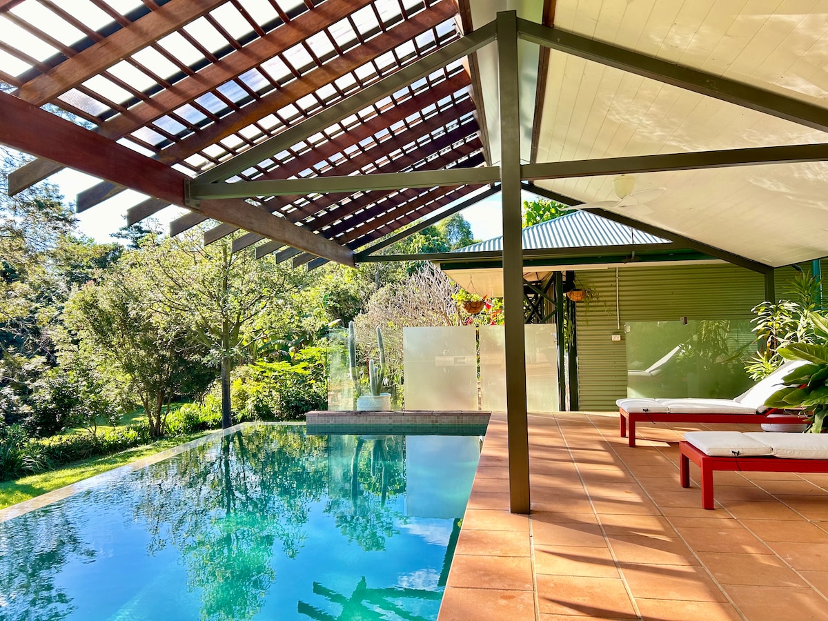 Sisenkabeni ye-Tweed. I-bungalow yethu iyindawo ekahle kakhulu yokuvakasha ukuze uhlole i-Tweeed Valley enhle ne-Byron Shires, okuhlanganisa i-Byron Bay, i-Nimbin ne-Tweed Coast. I-Uki, i-Murrwillumbah, i-Rail Trail ne-Tweed Gallery ziseduze nezindawo zokudlela eziwina umklomelo i-Tweeed River House ne-Potager. Jabulela ukubukeka okubabazekayo usemphemeni, uphumule kuvulande wakho wangasese, uzulazule engadini yezithelo noma ubhukude Sicela uqaphele: indlu yethu ayizifanele izingane noma izilwane ezifuywayo.