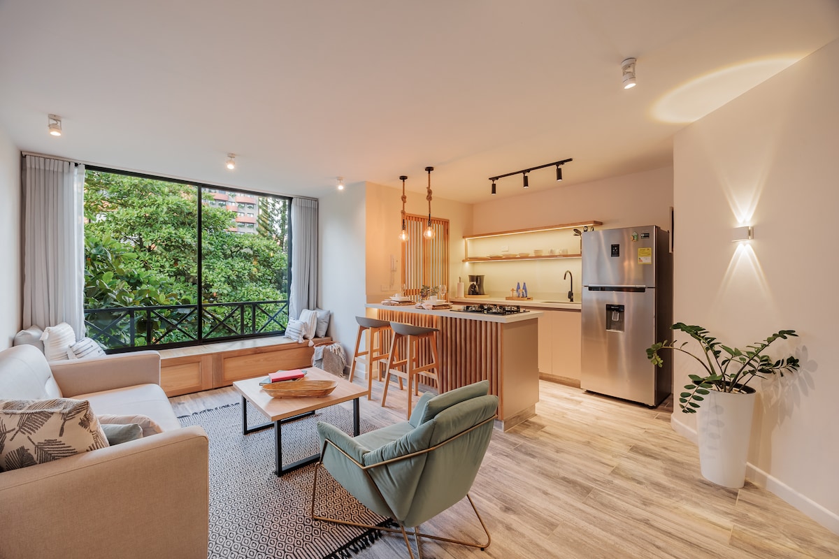 RECENTLY RENOVATED -High-speed internet great for remote work -Brand new A/C -Fully renovated design apartment - King size bed -Breathtaking views of Medellín (trust me, worthwhile to stay here) -16th floor -Unbeatable location in Poblado near to Provenza and Lleras Park -Modern amenities -Spacious living area -Smart TV x 2 -Washer & Dryer Tower -Pool and Gym -Coworking space -Restaurant inside the building -Parking lot -Self check-in -24/7 Security