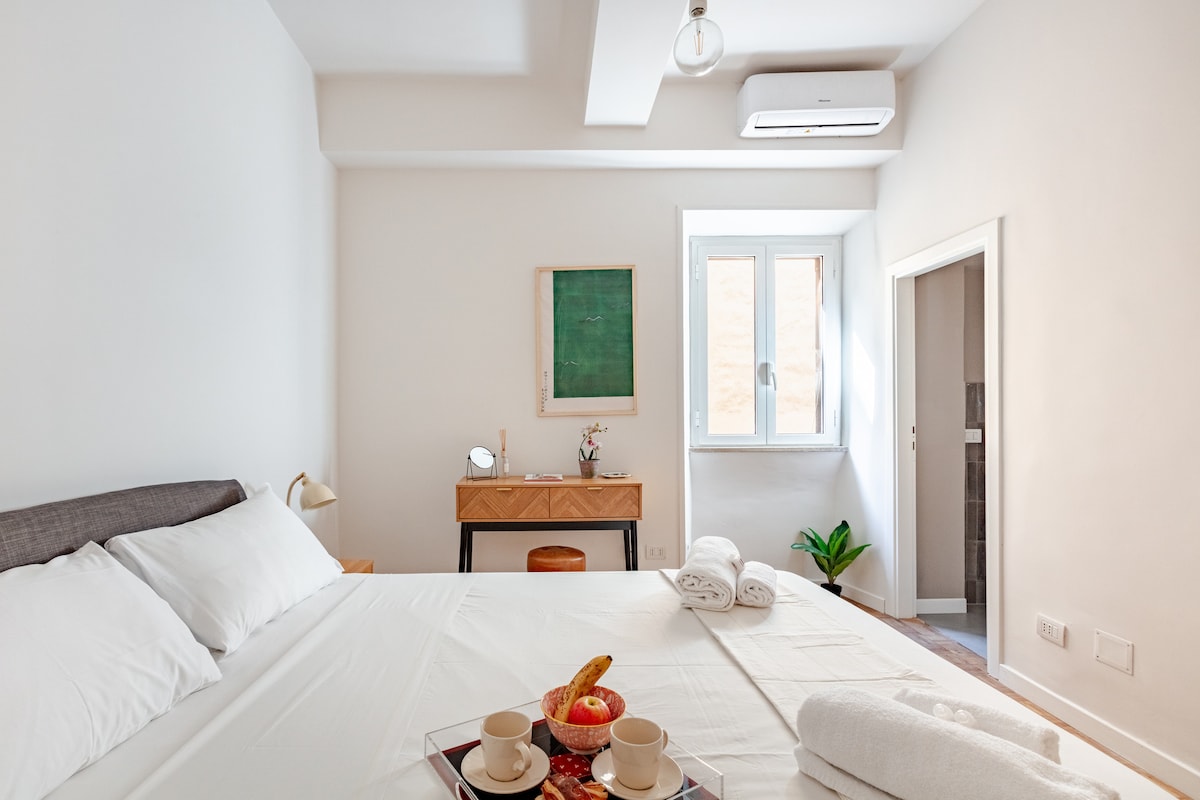 Luxurious 78 sqm apartment in the heart of Rome, on Via Frattina, just steps from Piazza di Spagna. Fully renovated with high-end finishes, original stone details, and 18th-century wooden beams. Equipped with A/C, Wi-Fi, Smart TV, Bose system, washer/dryer, and a beautiful private terrace with jasmine plants — perfect for enjoying an aperitivo. Ideal for couples or families. Option to book the next-door unit (THE BREAK - VIA FRATTINA MAISON DELUXE) for groups. All services are walking distance.