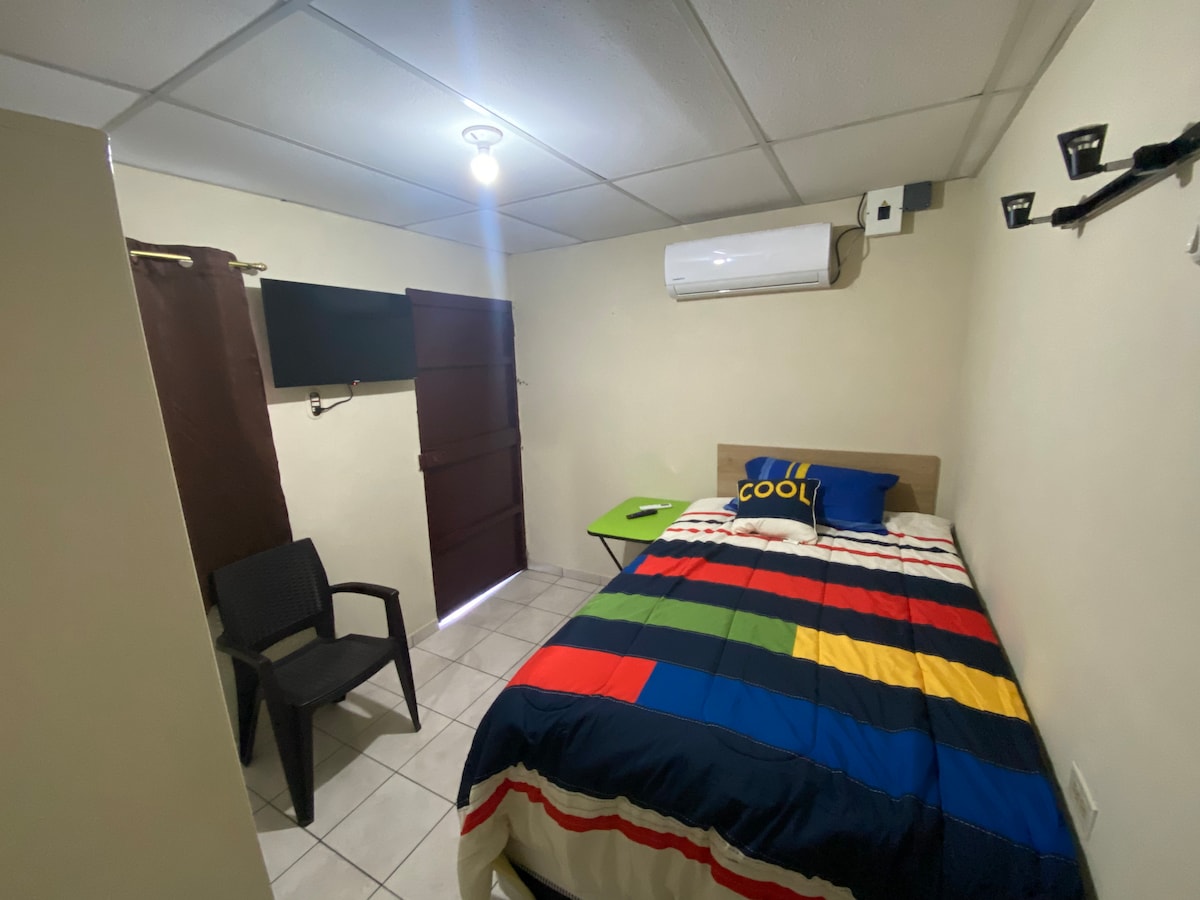 Disfruta de un check-in fácil y rápido, pones la dirección, te estacionas, abres la puerta y listo !!! Parqueo privado para hasta 3 vehículos. Ten en cuenta que el precio base es para 2 personas Relájate con aplicaciones de video mas IPTV de cortesía, no te preocupes por el agua, café y azúcar, van por nuestra cuenta! Cada cuarto posee aire acondicionado para mayor comodidad. La propiedad cuenta con 2 habitaciones y 1 baño completo.