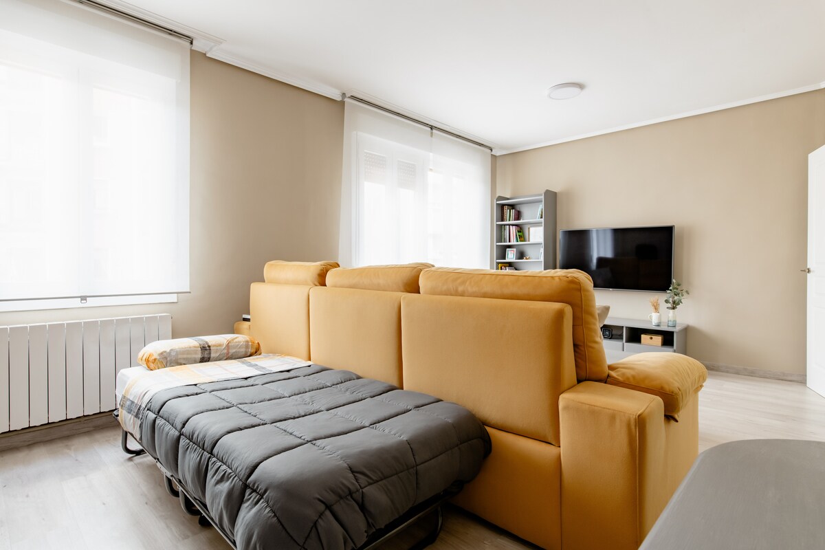 Jabulela ubulula baleli khaya elithulile neliphakathi nendawo. Ifulethi elilungisiwe ngo-2021 edolobheni lase-Munga, elilungele imibhangqwana noma imindeni. - Amakamelo okulala angu-2 (umbhede olala abantu ababili owodwa). - 1 igumbi lokugezela - Igumbi lokugqoka - Igumbi lokuphumula - Ikhishi Ayikho indawo yokupaka ephrayivethi kodwa kulula ukupaka endaweni. Yisitezi sesine esingenalo IKHESHI. I-13km ukusuka emabhishi aseBakio nase-Gorliz kanye ne-16km ukusuka eBilbao. Amakhilomitha angu-10 ukusuka e-Bilbao Airport. Ilungele ukwazi indawo ezungezile yesifundazwe sase-Bizkaia.