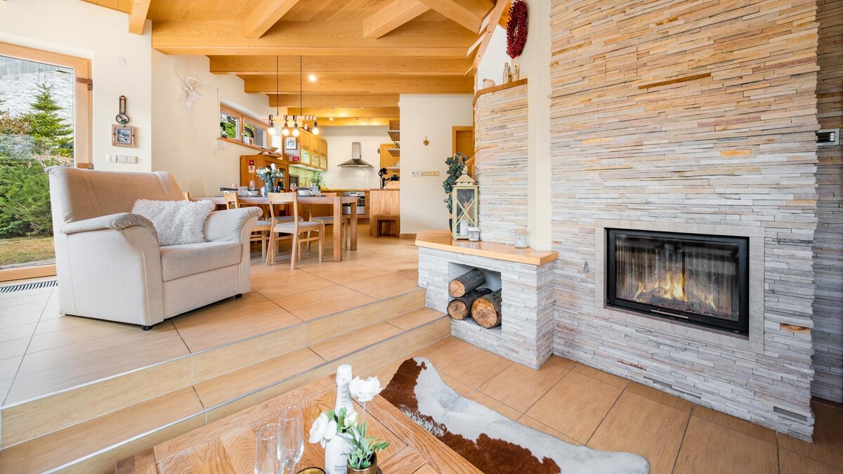 Baleka nomndeni noma uye eholidini lothando eChalet Wolf, indlu eyakhiwe ngamapulangwe emangalisayo ehlathini laseTatra. Isebenza ngokuphelele ngaphandle kogesi kanye namandla elanga (ebusika, kudingeka ukusetshenziswa kukagesi ngokucophelela, kungenzeka kudingeke i-generator). Lindela ukubuka okuhle kwezintaba zaseTatra, ukushona kwelanga, ukuthula kwehlathi, ubusuku obunethezekile ngasendaweni yokubasa, nemizila evela endlini. Phumula kubhavu wamanzi ashisayo ngaphansi kwezinkanyezi. Izindawo zokushushuluza ezingaphakathi kwemizuzu engu-25 yokushayela. Kunconywa imoto engu-4x4. Ubhavu wamanzi ashisayo +€80/ukuhlala.