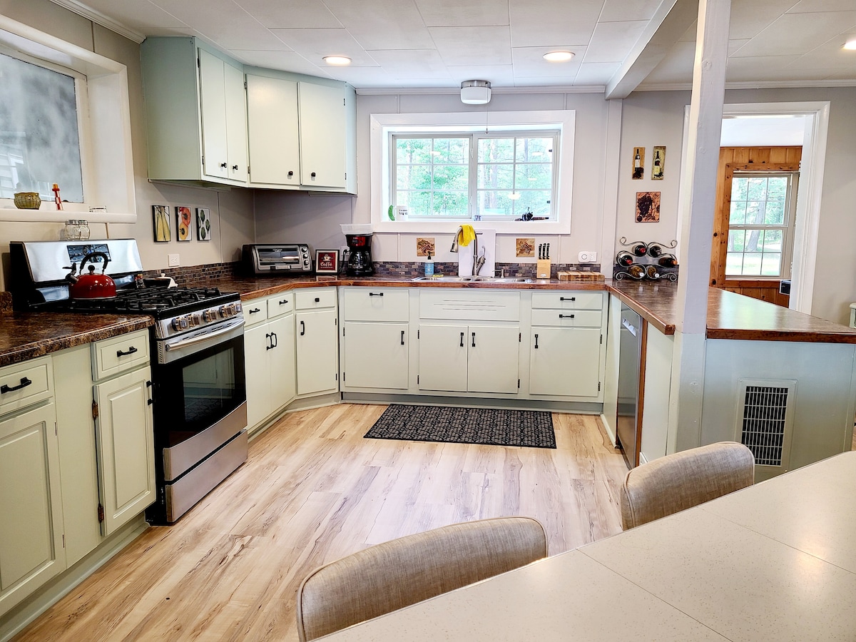 I-Highbanks iyikhaya lokugeza elingu-1.5 elinekamelo lokulala elingalala futhi londle abantu abafika ku-6. Isidlo sasekuseni esigcwele sifakiwe! Zisebenzele: Izinto ezifakiwe, kodwa ezingagcini lapho; Ikhofi (decaf/reg), i-cocoa eshisayo (kureig + ibhodwe lendabuko), izinhlobo eziningana zokusanhlamvu, ama-waffle, ama-pancake, ubisi, ijusi, amaqanda, isoseji, isinkwa + ngaphezulu! Ikhaya linesihlungi se-HEPA, kanye nokuhlunga komoya okukhanya kwe-UV, nezindawo zelondolo endaweni enensipho nensipho. Kunendawo enkulu yokungena imoto enokupaka okuningi kwamaloli+izikebhe/amathilomu/ama-RV njll.