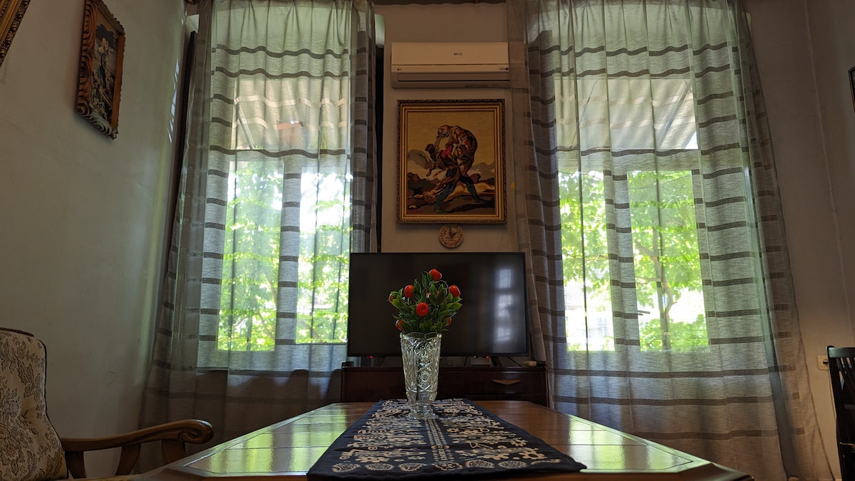 Enkabeni ye-Tbilisi enamandla, wamukelekile endlwaneni yengadi eklanywe kahle enkabeni ye-Tbilisi! Izungezwe yizihlahla nezimbali, le ndawo yokuphumula ihlanganisa ubuhle nemfudumalo yemvelo. Ingaphakathi elisesitayeleni, imininingwane ehleliwe, nezinto zobuciko zenza indawo ezwakala ihlukile futhi ithokomele ngendlela emangalisayo. Ifakwe amasevisi anamuhla, iyinhlanganisela ekahle kakhulu yomklamo, ukunethezeka, nemvelo. Izithombe azibonisi ubuhle bayo bangempela-kufanele uzibonele.
