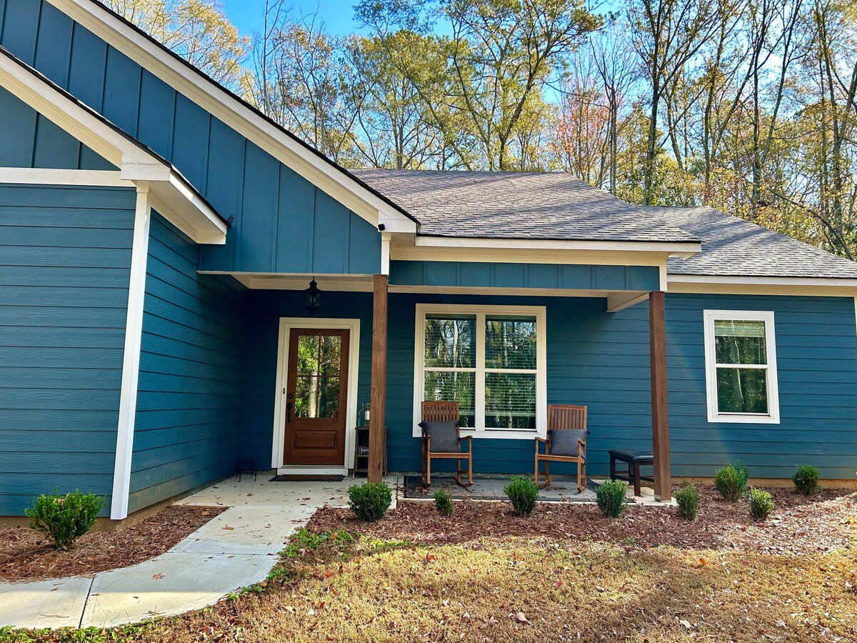 Balekela e-Southern Serenity, indlu eyakhiwe ngamapulangwe ethokomele eyamukela izilwane ezifuywayo e-Warm Springs, e-GA eduze kwe-F. D. Roosevelt State Park ne-Callaway Gardens. Kulala abantu abangu-7 embhedeni omkhulu, embhedeni omkhulu, embhedeni wabantu ababili (ogcwele & owabantu ababili), nezindlu zokugezela ezimbili eziphelele. Jabulela ukujikijela emaphongweni, ideski elikhulu elingemuva, igceke elibiyelwe, indawo yokubasa, indawo yokubasa, indawo yokosa, nekhishi elinakho konke, eline-KEURIG. I-inthanethi ye-fiber, i-wifi, ne-TV yokustrima kukugcina uxhunyiwe. Ilungele ukuvakasha komndeni, imikhosi yasekwindla, noma ukuvakasha okunokuthula ezintabeni ukuze ungcebeleke, uvuseleleke, futhi uxhumane nabanye.