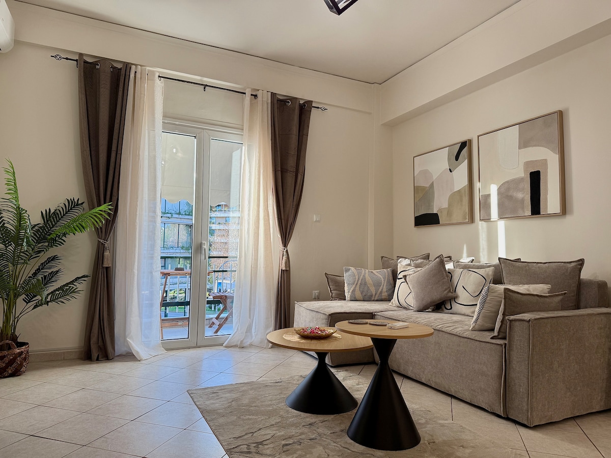 Leli fulethi elilungisiwe elisesitayeleni lisesitezi sesithathu emgwaqweni othulile kwenye yezindawo ezinhle kakhulu zase-Athene. Inamakamelo amabili anemibhede emikhulu, igumbi lokuphumula eline-smart TV nosofa, ikhishi elinakho konke, ihholo elikhulu/indawo yehhovisi namabhalkhoni amabili, elinye libukeka emkhathizwe wedolobha nokushona kwelanga. I-aparment inikeza wonke amasevisi adingekayo, njenge-2 a/c yomoya obandayo/oshisayo, amafeni, izinto zokupheka, imishini yokwenza ikhofi, umshini wokuwasha, i-Wi-Fi enokwethenjelwa.