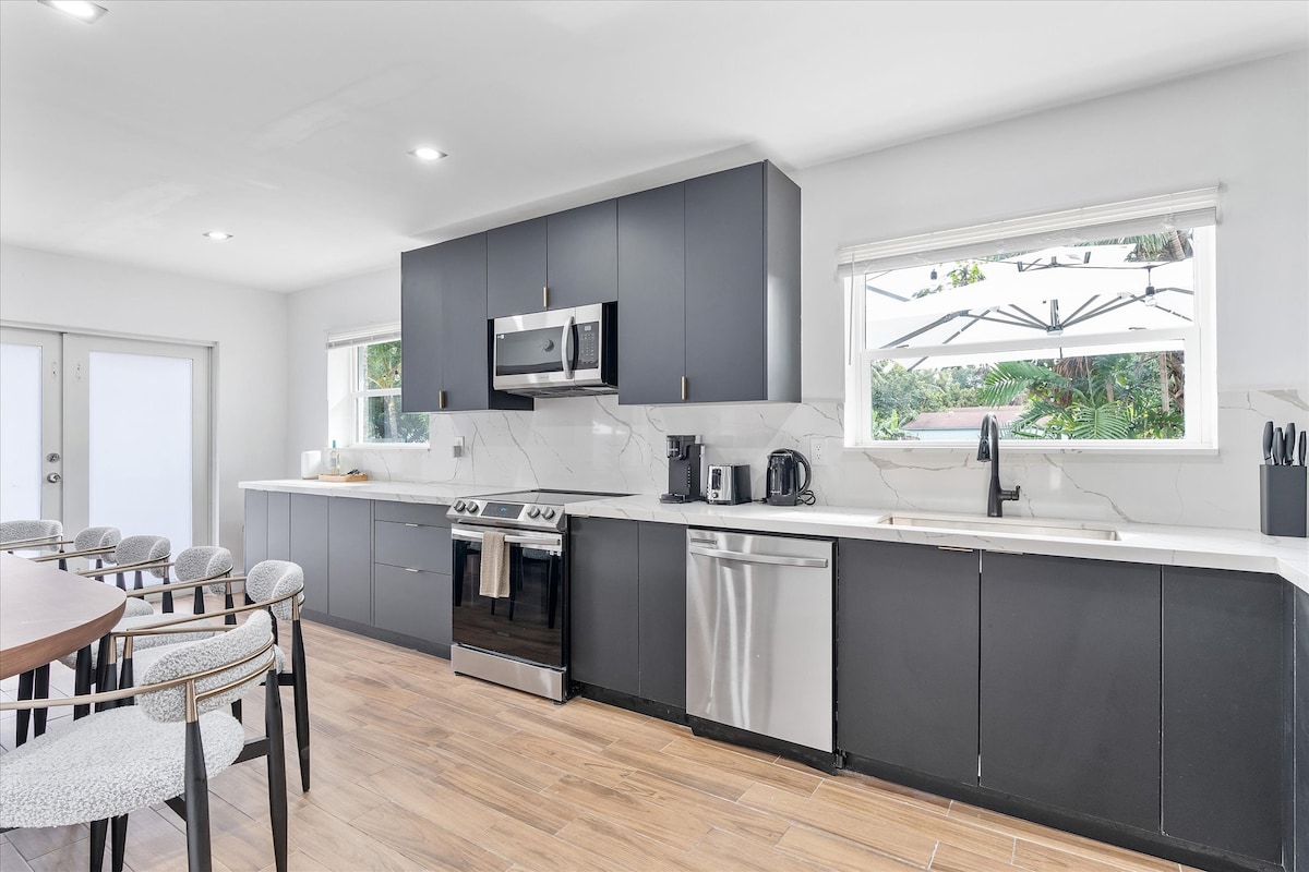 Leli khaya likanokusho elinamakamelo amane okulala, elinamakamelo amabili likumema ukuba ujabulele ukuhlanganiswa okuphelele kwenjabulo yedolobha nokungcebeleka okugqugquzelwe. Phumula ku-jacuzzi ngemva kosuku lokuhlola idolobha noma ujabulele ukwakheka okuvulekile, okunomoya okulungele imibuthano yomndeni noma ukuvakasha kweqembu. Ikhaya liklanyelwe ukuba libe yindawo yakho enokuthula, lihlinzeke ngokuvakasha kwangasese enjabulweni yedolobha kuyilapho liqhele ngemizuzu nje ukusuka ekudleni okusezingeni lomhlaba, ukuthenga, namabhishi adumile ase-Miami