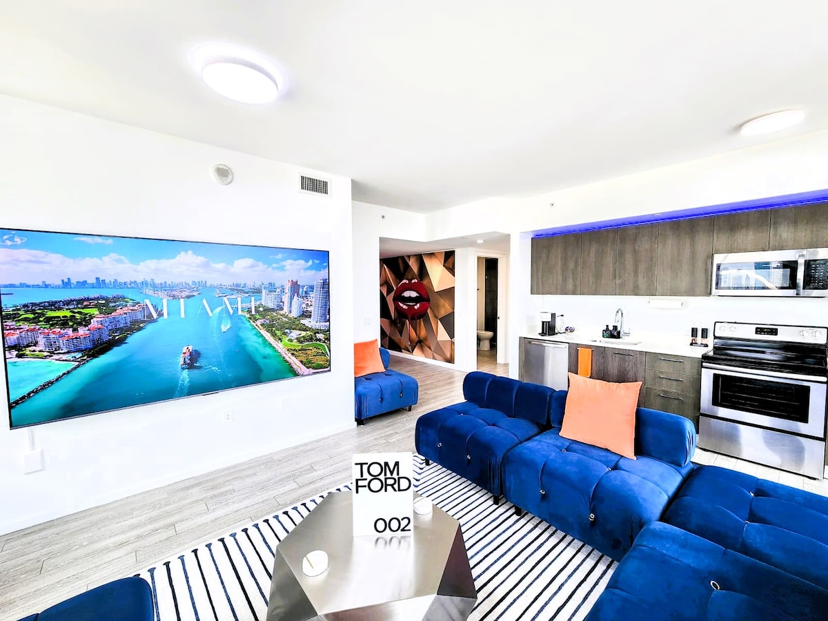 ⭐️ Downtown Miami enendawo yokubhukuda + Indawo yokupaka I-Picasso-inspired 2BD/2BA PentHaus, iyigalari esibhakabhakeni enendawo yokubuka ulwandle, umkhathi nendawo yokubhukuda, enezinto zokugcina indlu imnyama. Idizayinelwe abasunguli, abathandi bomklamo + izihambi ezisezingeni eliphezulu. Wonke amakhona ayindawo yokubeka okuqukethwe. Izinyathelo zokudla, ukuthenga + ukuzijabulisa kwasebusuku okusezingeni eliphezulu. Imizuzu eya e-Bayfront Park, e-Brickell, e-Wynwood, e-Midtown, e-Design District, e-South Beach + e-MIA. Amasevisi esitayela se-resort, indawo yokuzivocavoca, indawo yokubhukuda + indawo yokupaka ephephile. Lokhu ukuphila kwase-Miami—okusezingeni eliphezulu