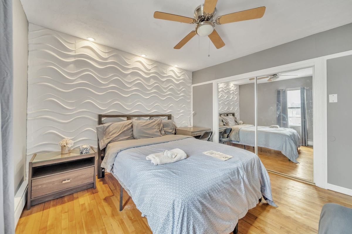 Experience comfort and style in this unique loft apartment featuring 16ft ceilings, boho décor. 2BR/2BA , custom woodwork & natural plants. Three lofts create “bedrooms inside bedrooms” for privacy. Spa-style bath Filled with natural plants and handmade details. Just 6 min walk to Blue Line, 7 min to Downtown, 5 min to Logan. Walk to shops, restaurants, parks & waterfronts. Cozy, perfect for families, friends, or work travel. Kid-Friendly. NO PARKING assigned 🚫 No parties/events.