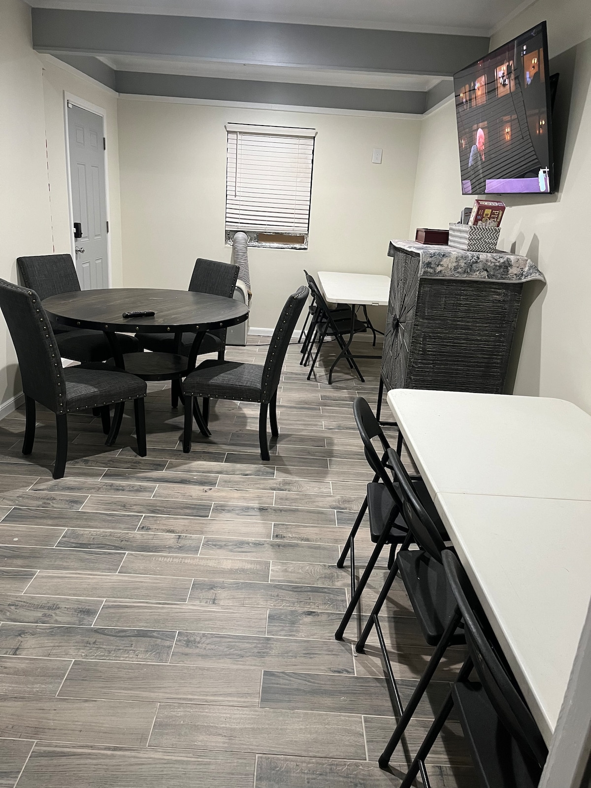 Indlu ethokomele emiswe kahle enamakamelo amabili amakhulu kanye novulande wangaphandle ophrayivethi. Ukuze wenze ukuhlala kwakho kuphumule kakhudlwana -- umbhede omkhulu, umbhede omkhulu, imibhede emibili egcwele nosofa ababili. Futhi, i-RO System entsha, izingodo zomlilo wegesi, umshini wokuwasha/wokomisa/umshini wokuwasha izitsha. I-inthanethi yamahhala enokusakaza ku-Samsung engamasentimitha angu-58, i-Samsung engamasentimitha angu-55 ne-Roku engamasentimitha angu-43. Thola wonke amabhodwe, amapani, izitsha ezidingekayo ekhishini nawo wonke amalineni embhedeni/kubhavu. Ngiphuphe ngombhede wosana ophathekayo. Inja encane yamukelekile ngemali yesilwane esifuywayo. Umngane oyedwa woboya ngokubhukha ngakunye.
