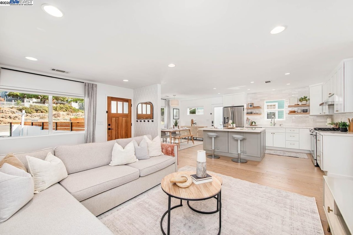 Siyakwamukela endlini yethu elungiswe ngokucabangela, yesimanje, enethezekile enamakamelo angu-4! Leli khaya linikeza ukulinganisela okuhle kokuphumula okunokuthula nokufinyelela kukho konke okunikezwa yi-Bay. * Izinga elilodwa, elifinyelelekayo. * Amakamelo amakhulu anemibhede yonke i-Queens ne-King size. * Ikhishi elisha, izindlu zokugezela, izinto zikagesi, i-TV, namafenisha. * Ukusetha ihhovisi kanye ne-inthanethi yejubane elingu-350Mb. * Igceke elingemuva elizolile elinombono wegquma. Imizuzu engu-5 kusuka ku-580/880/ISITHUTHI somphakathi se-Bart Imizuzu engu-15 ukuya e-Oakland Airport